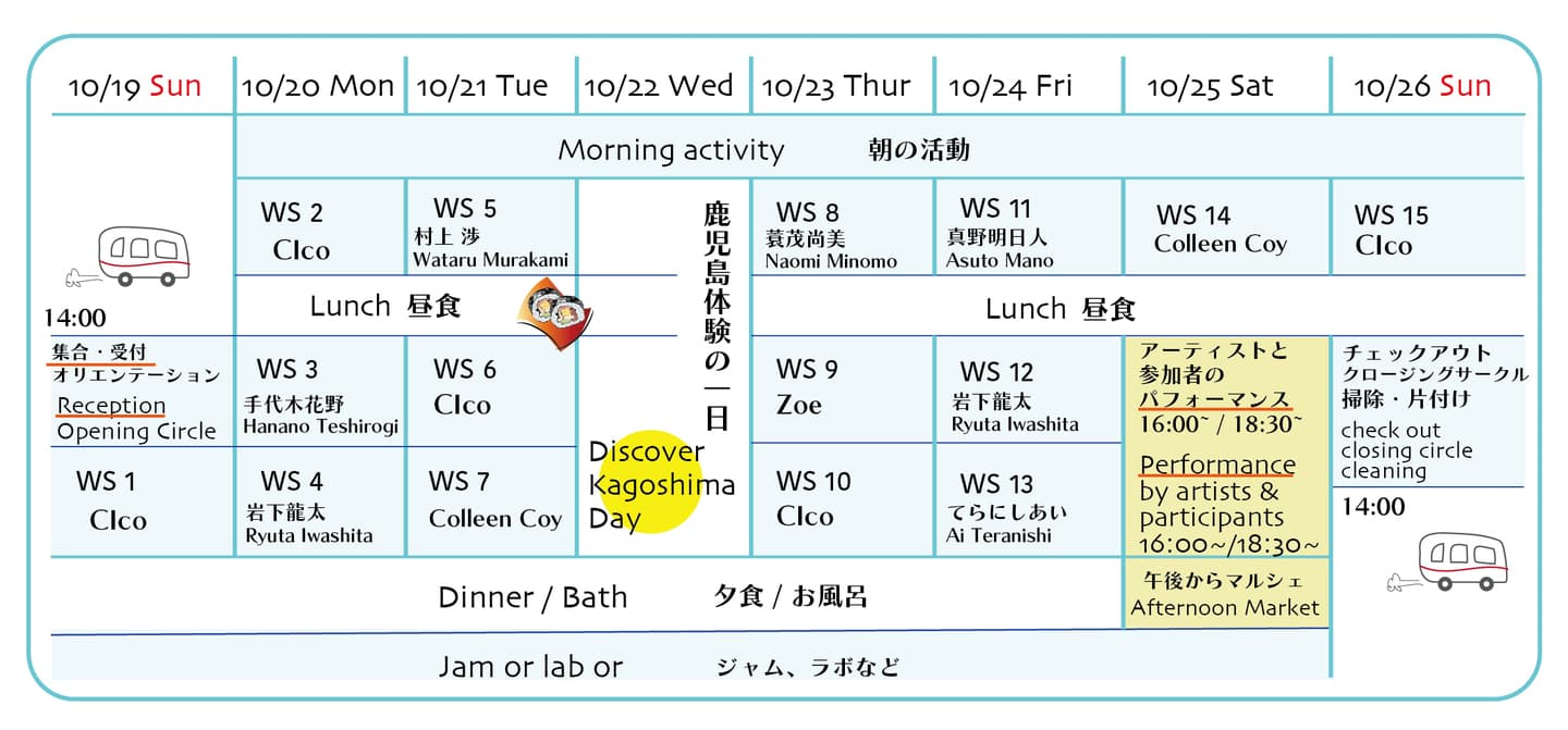 • ◉ 10/26 は14:00頃解散予定、鹿児島空港までのチャーターバス(1000円)を出す予定です。